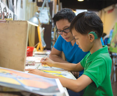 戴上耳蜗只是一个开始,手术后一个月,浩然走进了康复课堂。